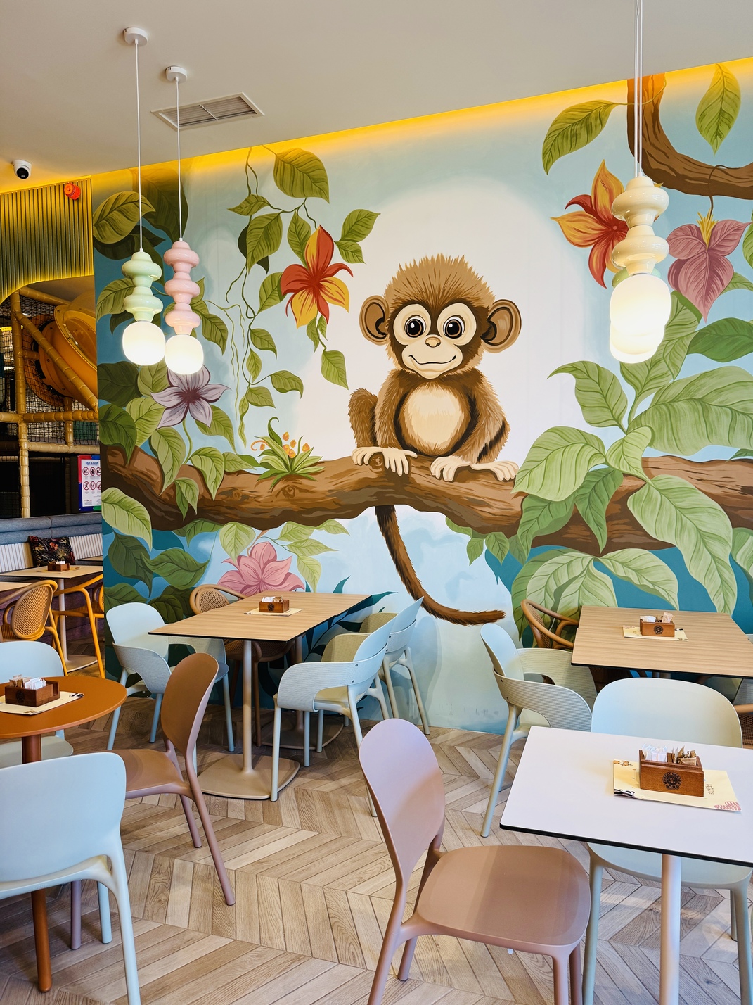 Kombinacija restorana i prostora za igru, idealna za porodični izlazak. Dok deca skaču i trče, roditelji mogu da uživaju u kafi i druženju.